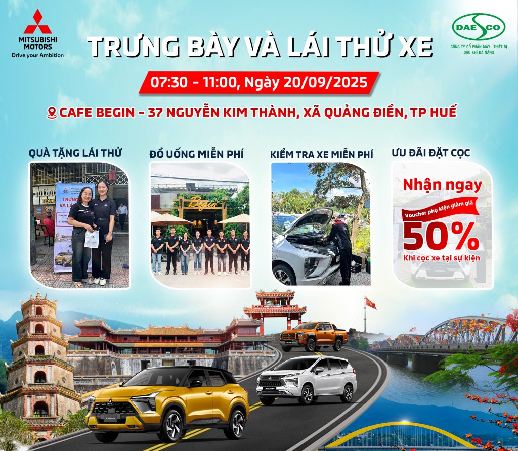 SỰ KIỆN TRƯNG BÀY VÀ LÁI THỬ XE MITSUBISHI TẠI THÀNH PHỐ HUẾ 20/09/2025