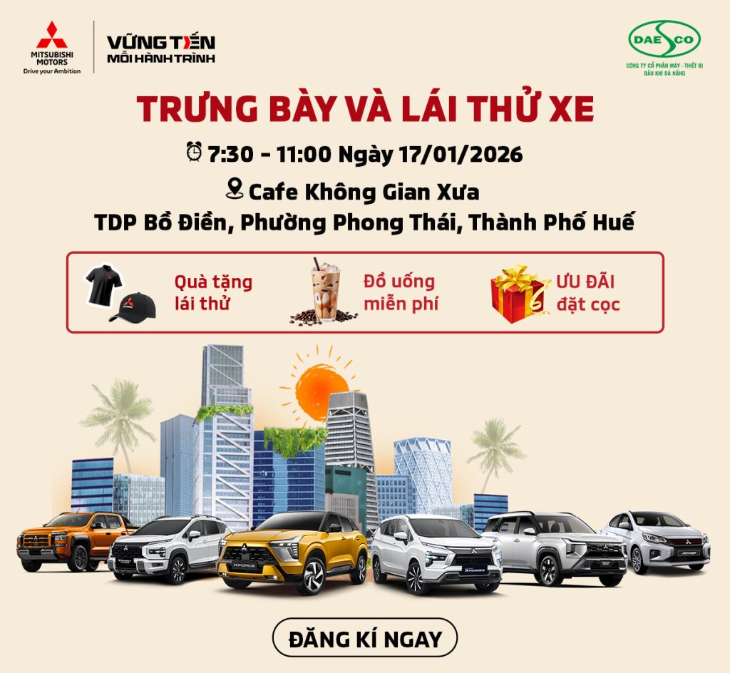 Trân trọng kính mời quý khách hàng tham dự sự kiện trưng bày và lái thử các dòng xe Mitsubishi Thời gian: 07h30 – 11h00, ngày 17/01/2026 (Thứ 7) Địa điểm: Cafe Không Gian Xưa – TDP Bồ Điền, Phường Phong Thái, Thành Phố Huế HOTLINE 24/7: 0905 715 368 Đến với chương trình quý […]